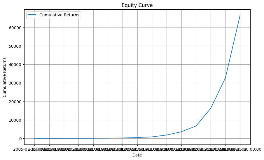 Keeping to the project scope, I did not implement other performance metrics other than simple returns and cumulative returns. This is a large issue for this backtest because we have no way of assessing risk. That said even if we did have a way of assessing risk, I’ve backtested a few strategies I scripted myself on TradingView using a multitude of performance metrics like max draw down, sharpe ratios, sortino ratios, profit factors etc. Additionally large amounts of robustness checking across parameters, brokers, and time frames. A good amount of the structure of this code base was inspired from TradingView’s structure of backtesting, including the idea to be able to scipt strategies simply and import them onto an existing price time series. Well in this case a series of individual events. I should mention that despite all my efforts to create a perfect backtested strategy and avoiding all possible sins of backtesting (Luo et al. 2014), the few strategies that met strong criterias across all performance metrics and robustness testing still failed to be productive in following year. There’s a large issue in multiple testing, selection bias and backtest overfitting that I haven’t been able to figure out yet. As far as I know backtest overfitting is an issue that hasn’t been solved. As far as quantitative reasearch goes, I put feature importance higher up than backtesting by a fair margin. As you might guess I’m pretty pessimitic about backtesting, I think it’s fun to see huge gains, but this project was enjoyable because ALL of my previous backtesting framework experience has been in vector based backtesting. Creating this framework might mean that if I do figure out a profitable strategy I could eventually hook this up to some websockets and use my code for something else besides research for once!
